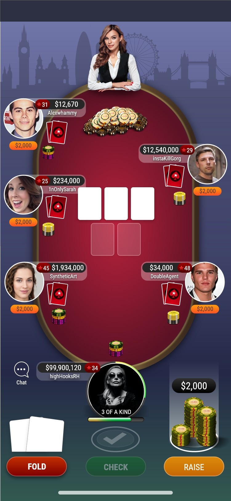 Player profile on the top left and away from the table was confusing.
