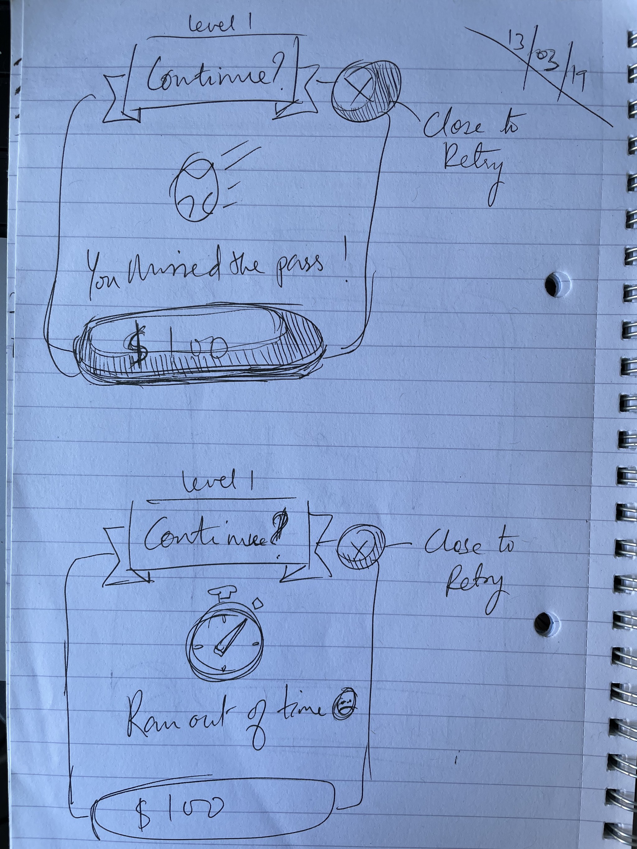 The process involved sketches for the game mechanics and concepts. These were finalised before I started creating wireframes and final mock ups.