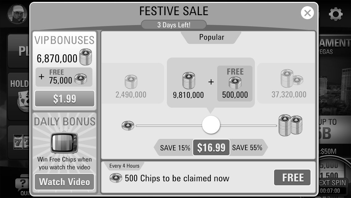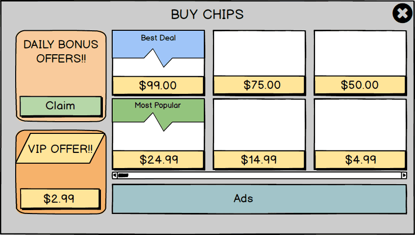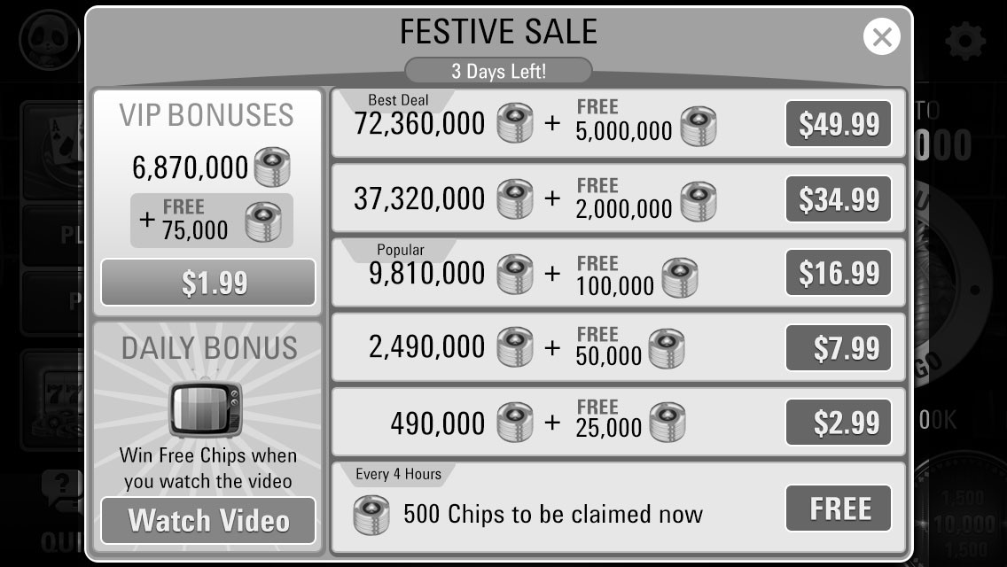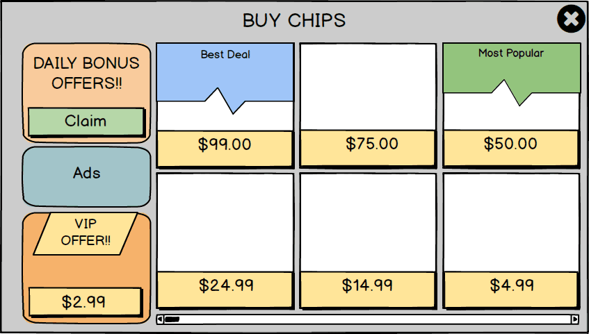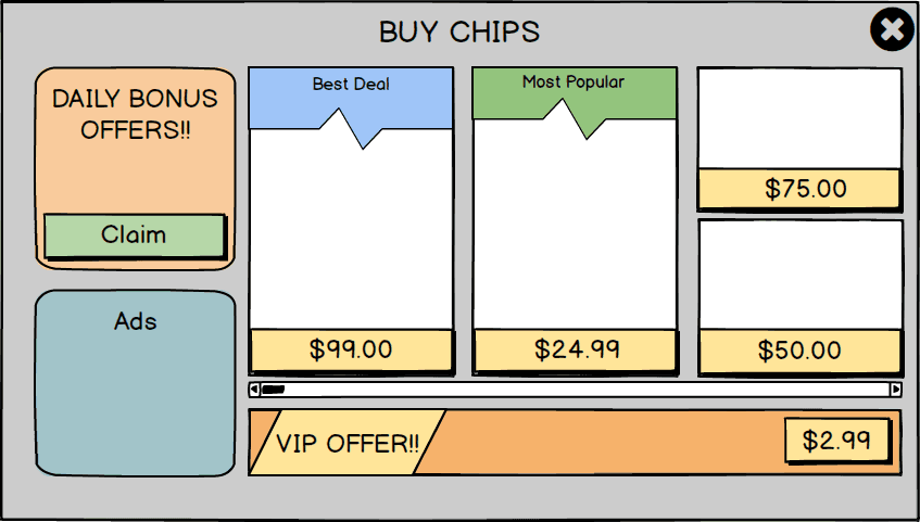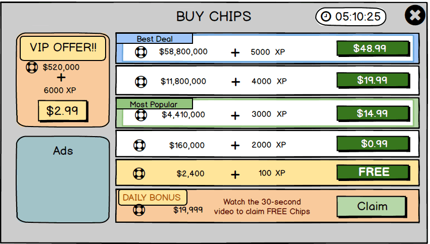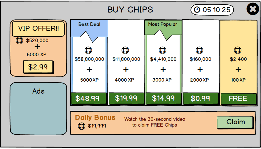 New paywall design with major emphasis only on the chips amount, deals and price points.