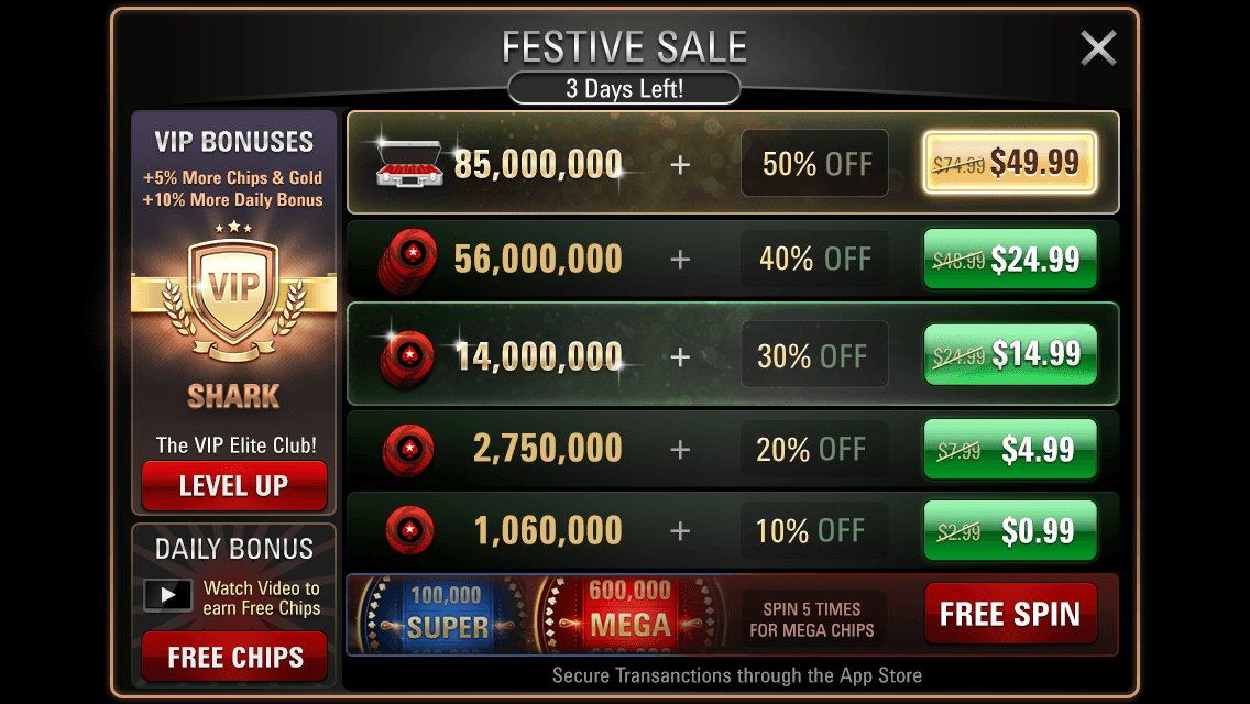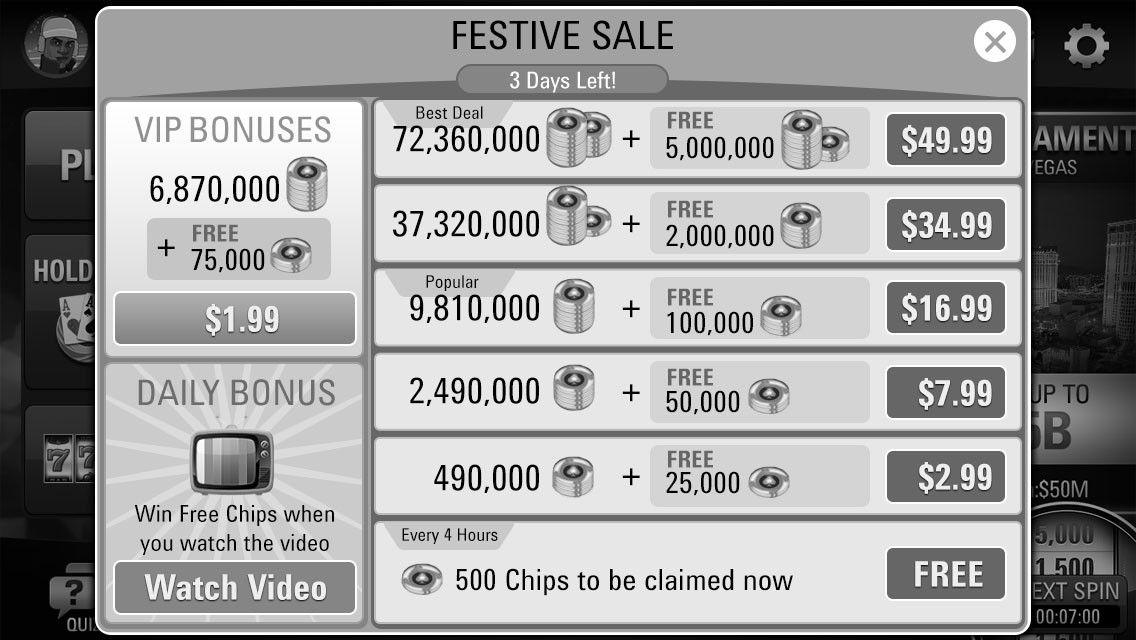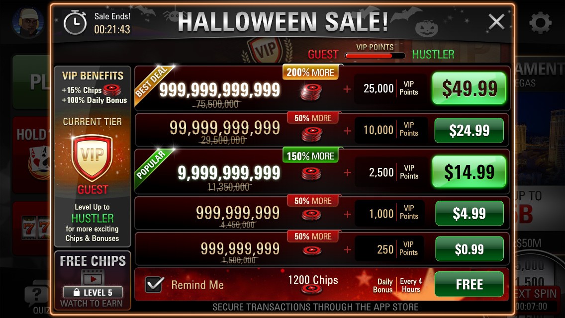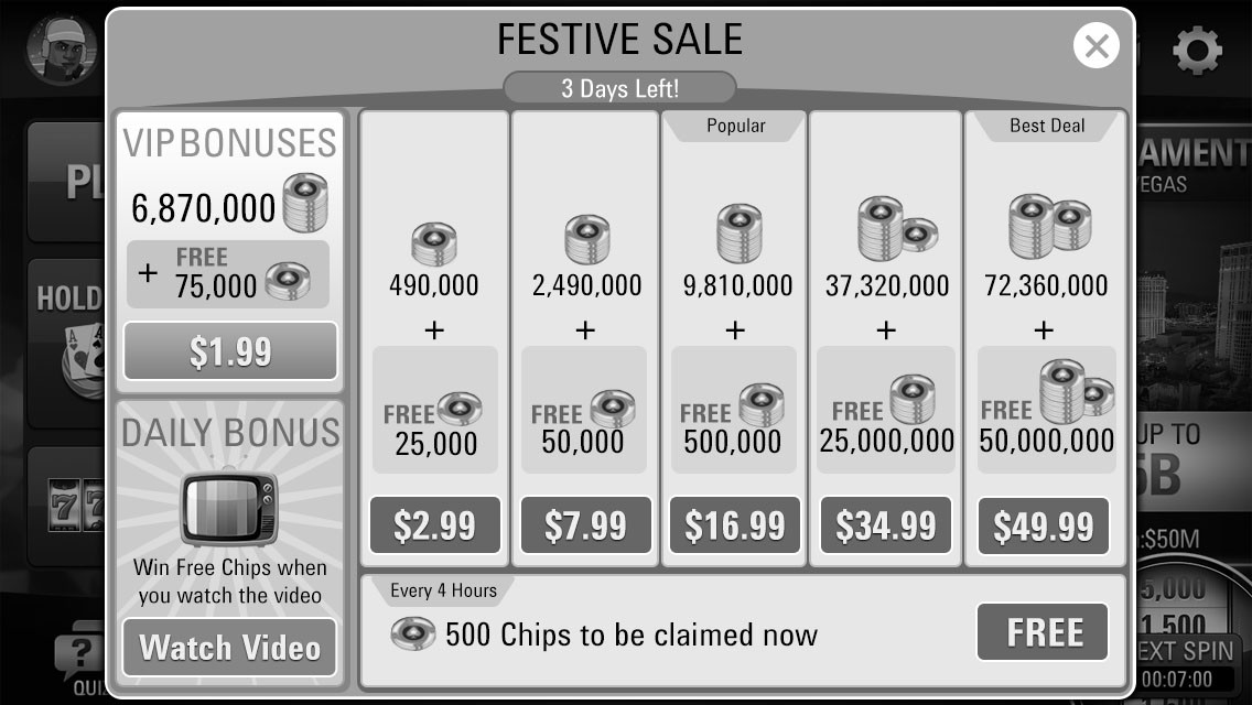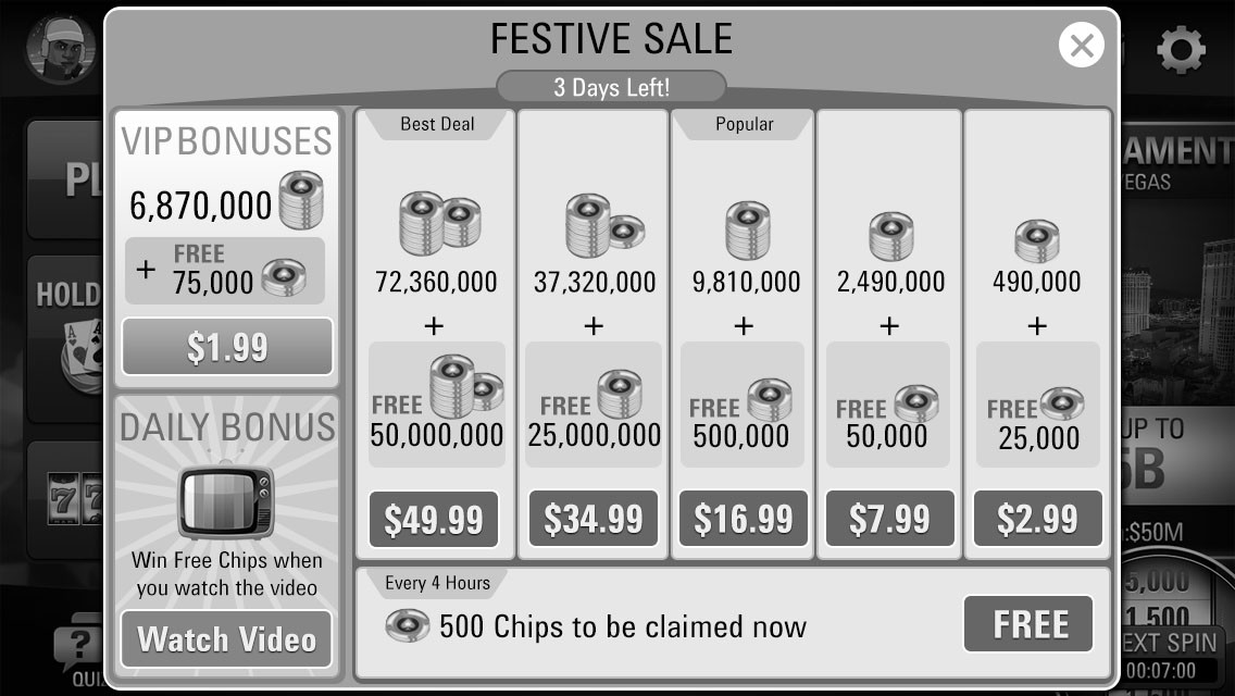 New paywall design with major emphasis only on the chips amount, deals and price points.