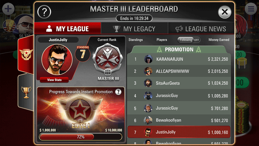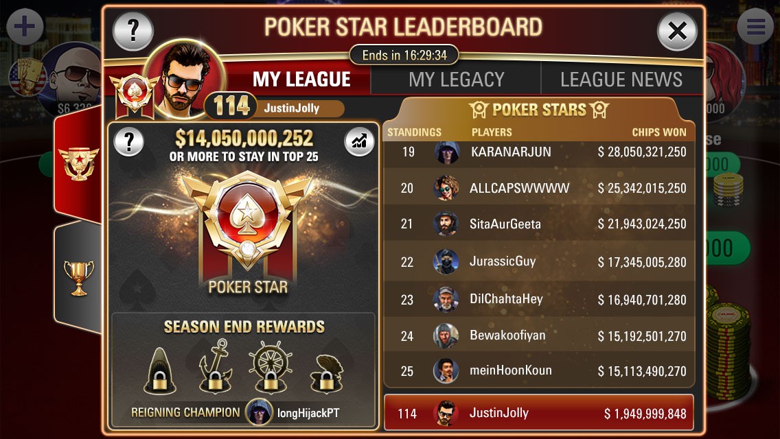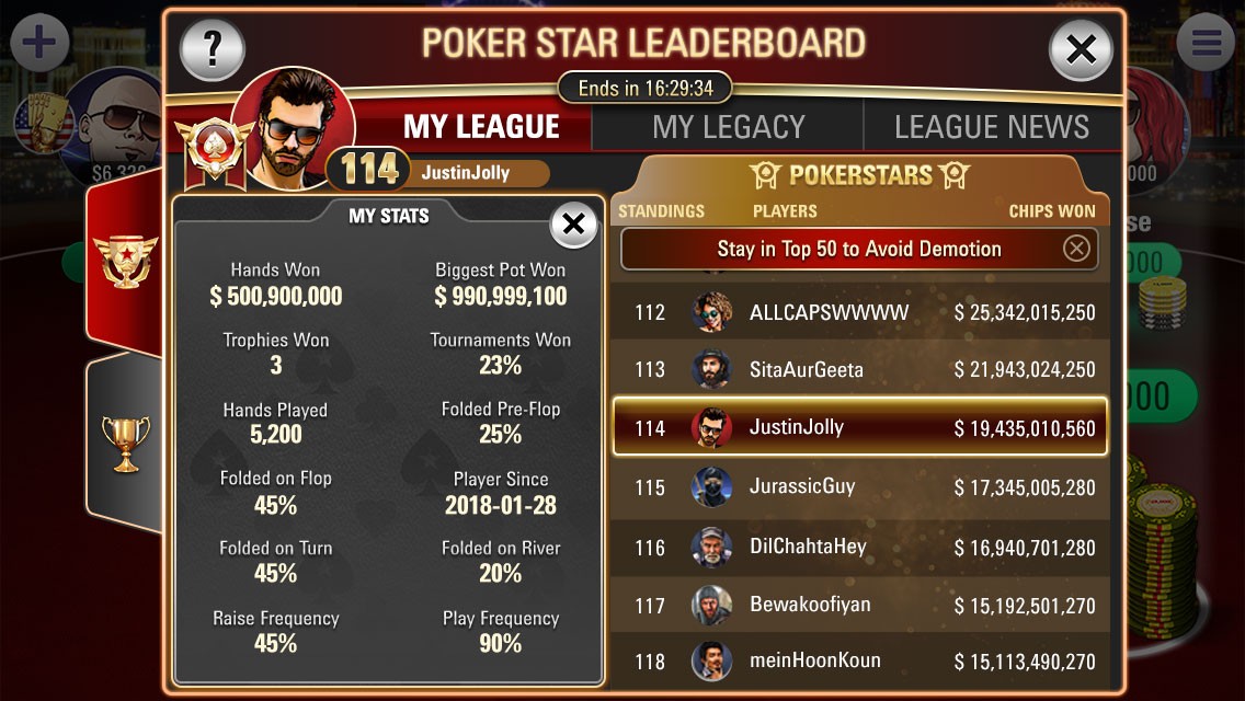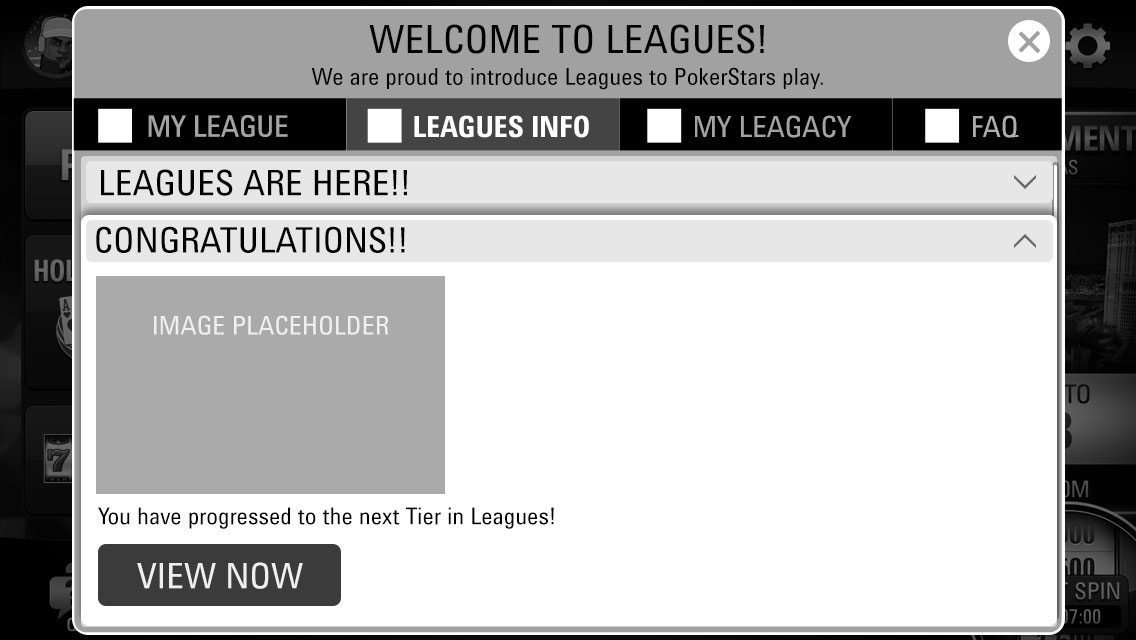 The idea was conceived for the addition of a superior ranking system named PokerStars League, allowing the inclusion of unique table items for players in this league.