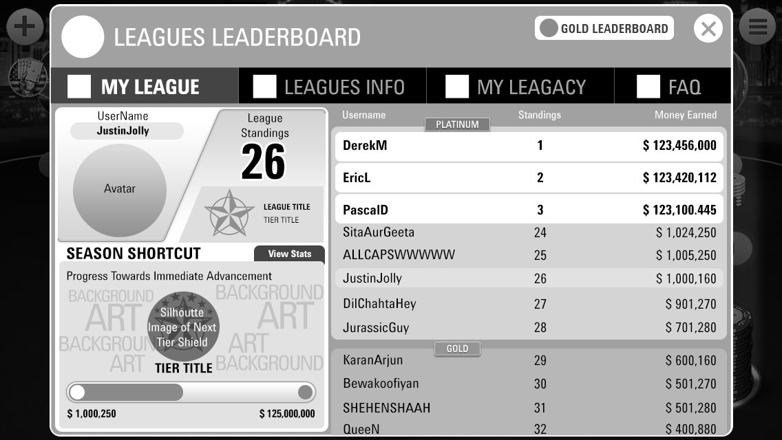 To design a New and Premium feature called Leagues leaderboard that would replace the existing global leaderboard.