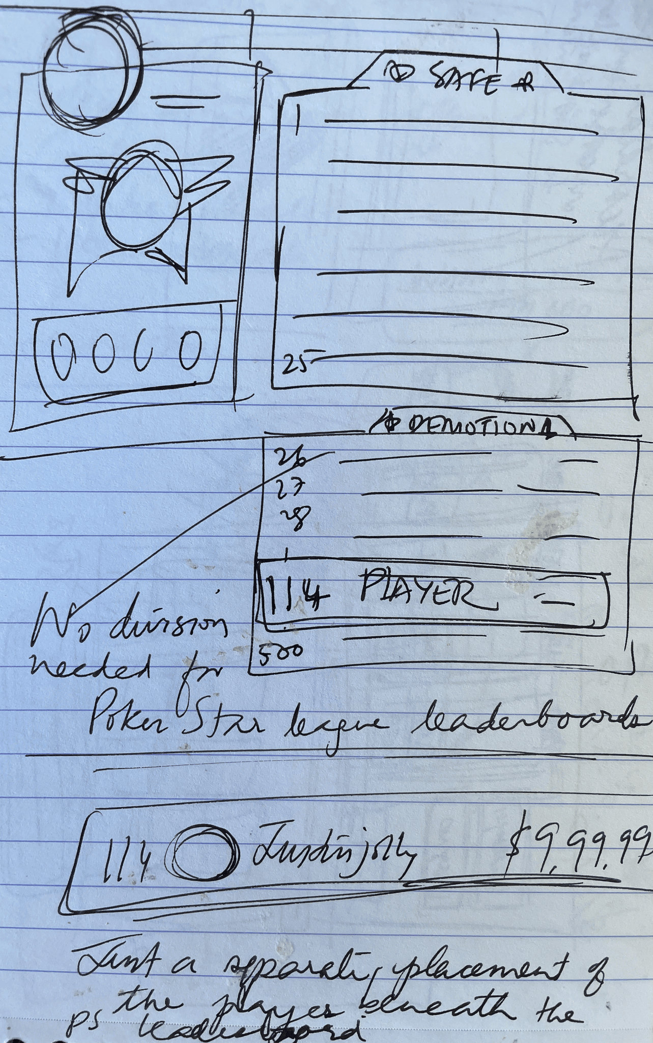 Leagues was entirely new feature for PokerStars Play mobile app. It was supposed to be large feature for existing and new players alike. Therefore, it had to be crafted very well starting with sketches