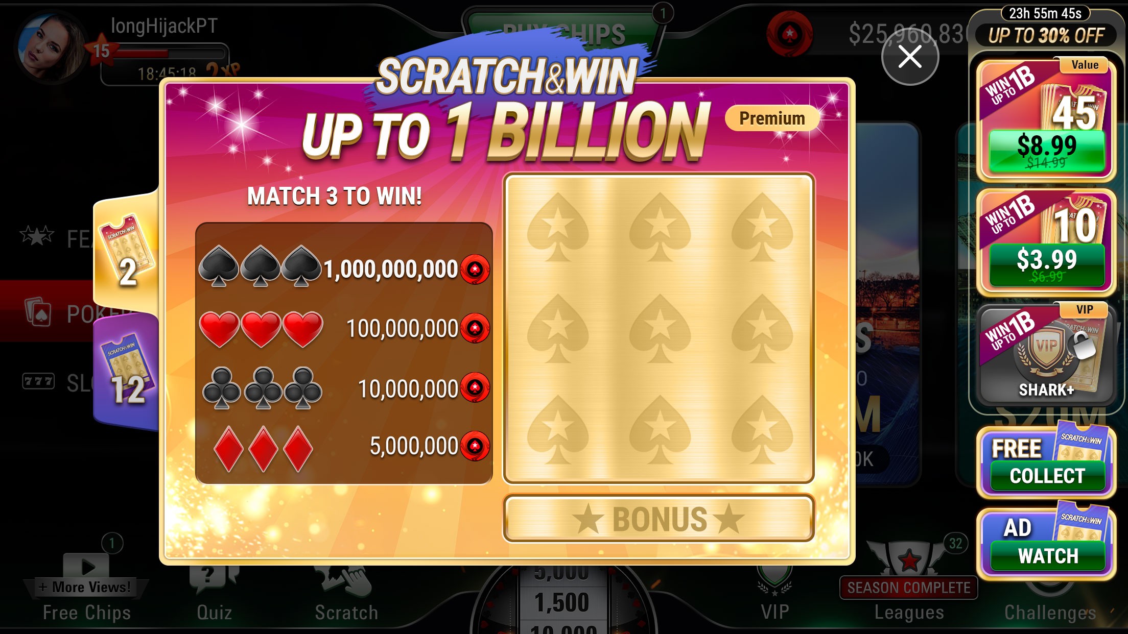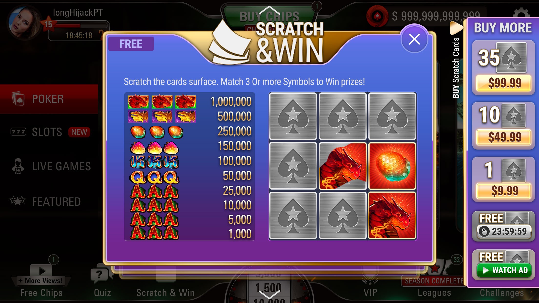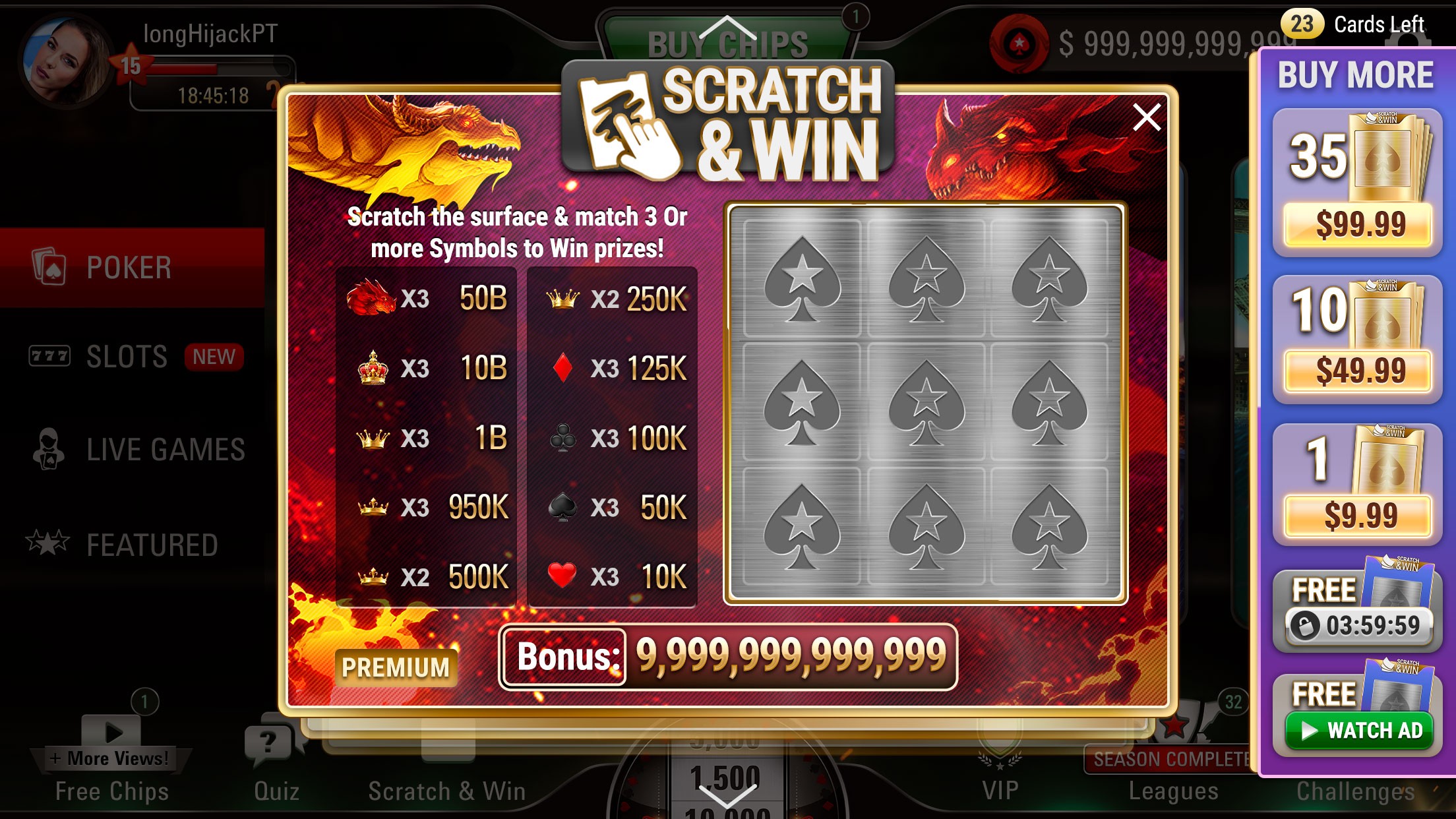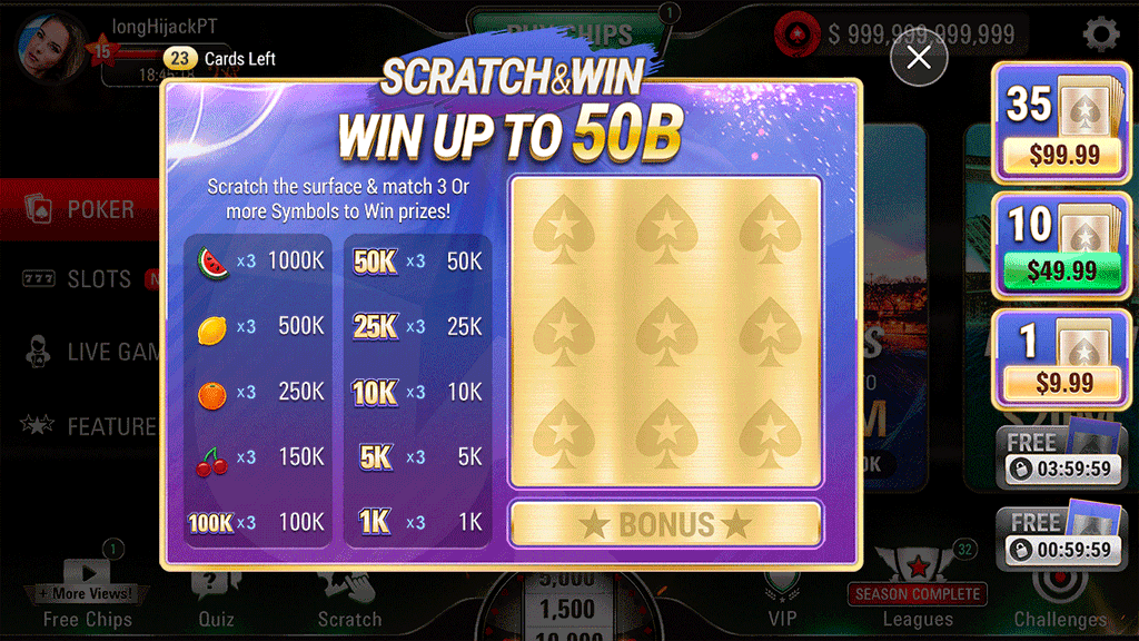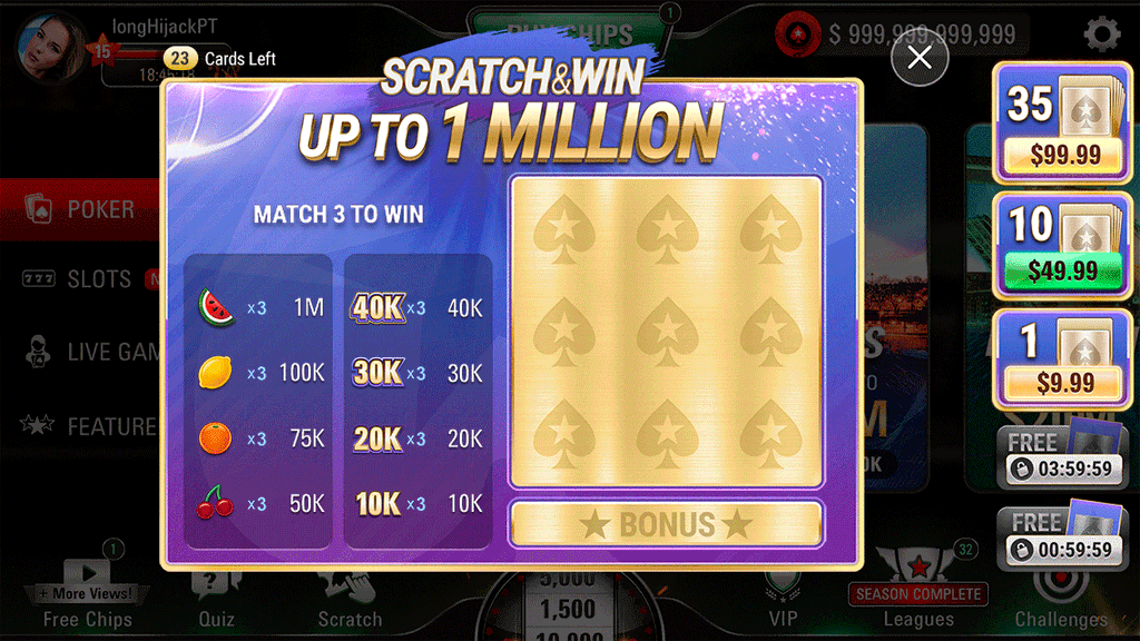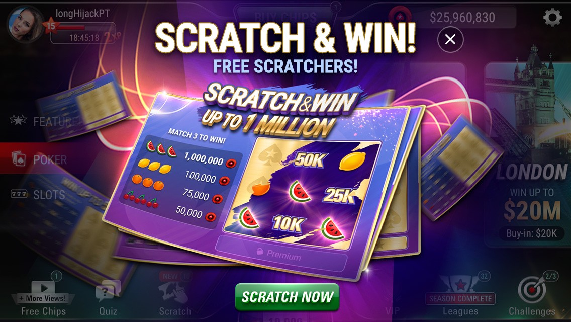 Business need to generate more revenue and attract new and existing players to a new Interactive Scratch Card feature for bonuses